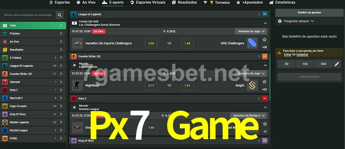 O Px7 Game oferece uma grande seleção de opções de apostas em e-sports com probabilidades competitivas